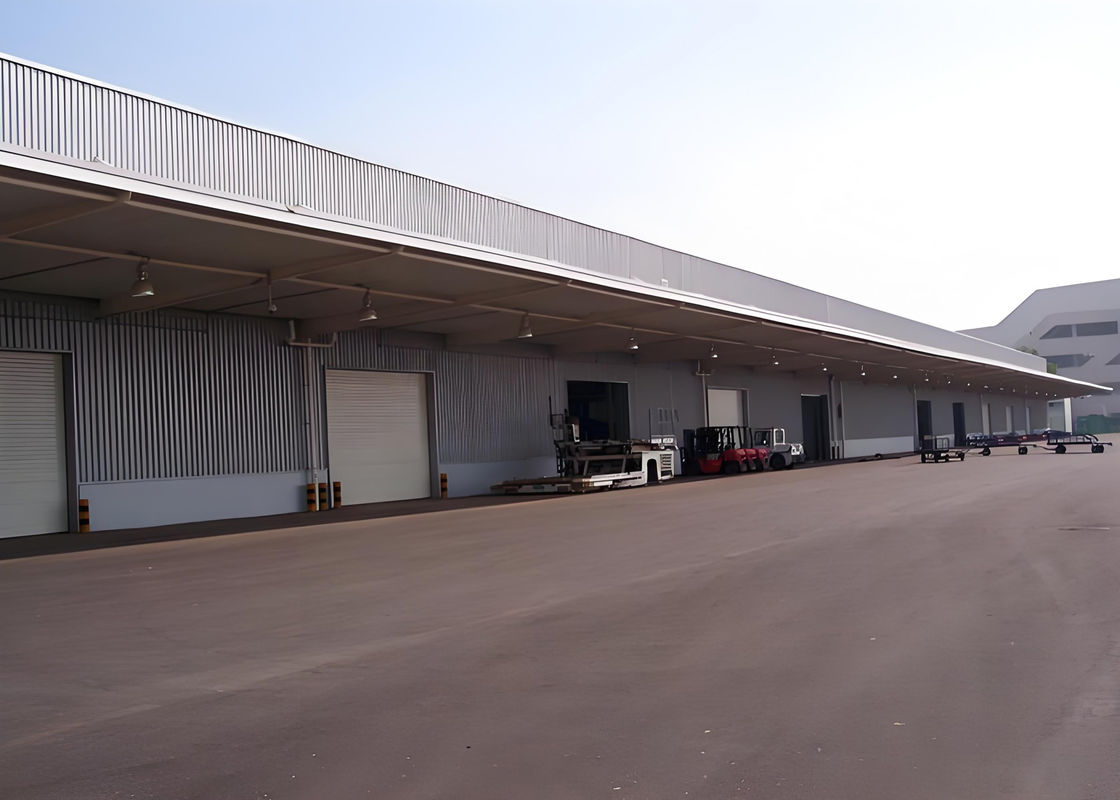 Dit Steel Structure Warehouse biedt grote ontwerpflexibiliteit, waardoor grote duidelijke spanningen, open interieurs en veelzijdige lay-outs mogelijk zijn om aan specifieke productiebehoeften te voldoen.Het is ontworpen om een soepele en logische stroom van productieprocessen te faciliteren., waardoor de afstand tussen de materialen en de verschillende werkplekken tot een minimum wordt beperkt, waardoor een efficiënte werkstroom wordt gewaarborgd en knelpunten tot een minimum worden beperkt.